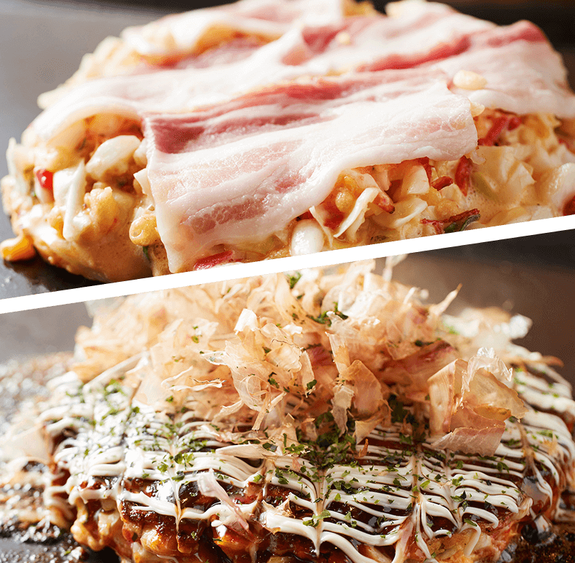当店では、関西風と広島風という2種類のお好み焼きに加え、